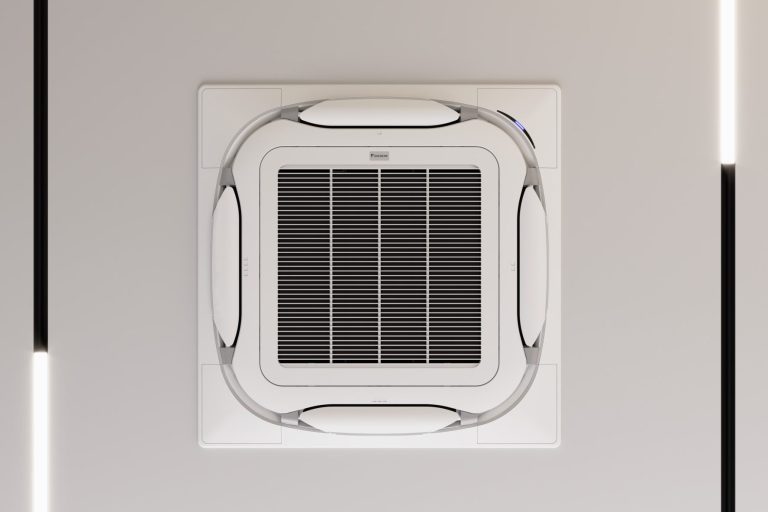 La climatisation cassette 4 voies Daikin est une solution encastrée dans le plafond, conçue pour diffuser l’air de manière homogène dans toutes les directions. Seule une grille discrète reste visible, ce qui garantit une intégration esthétique parfaite.